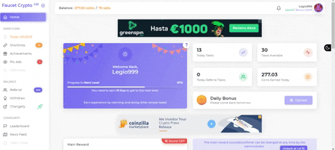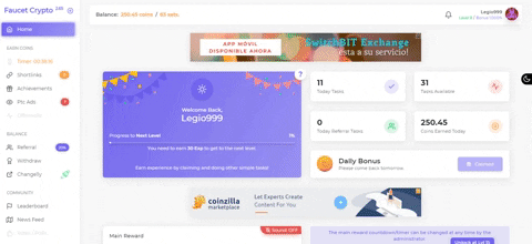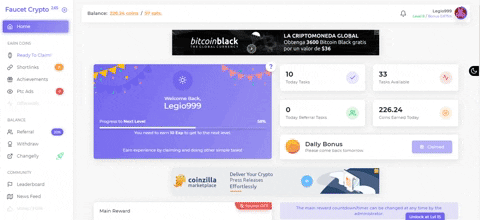 O Faucet Crytpo foi construído em 2017, o FaucetCrypto não pode ser classificado como uma simples torneira, mas sim como um site multitarefa totalmente gratuito que nos oferece a possibilidade de ganhar criptomoedas realizando 5 tipos de tarefas diferentes: Reivindicações , Links curtos, visualização de anúncios PTC, realizações e paredes de lance . Também possui um sistema de níveis com o qual você pode melhorar suas recompensas.